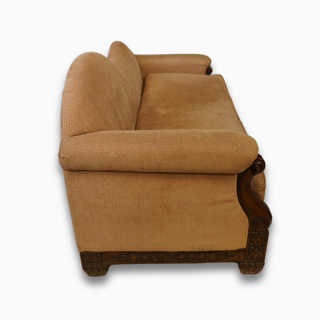 كنبة قماش باللون البيج مناسبة لغرف المعيشة وأماكن الجلوس.