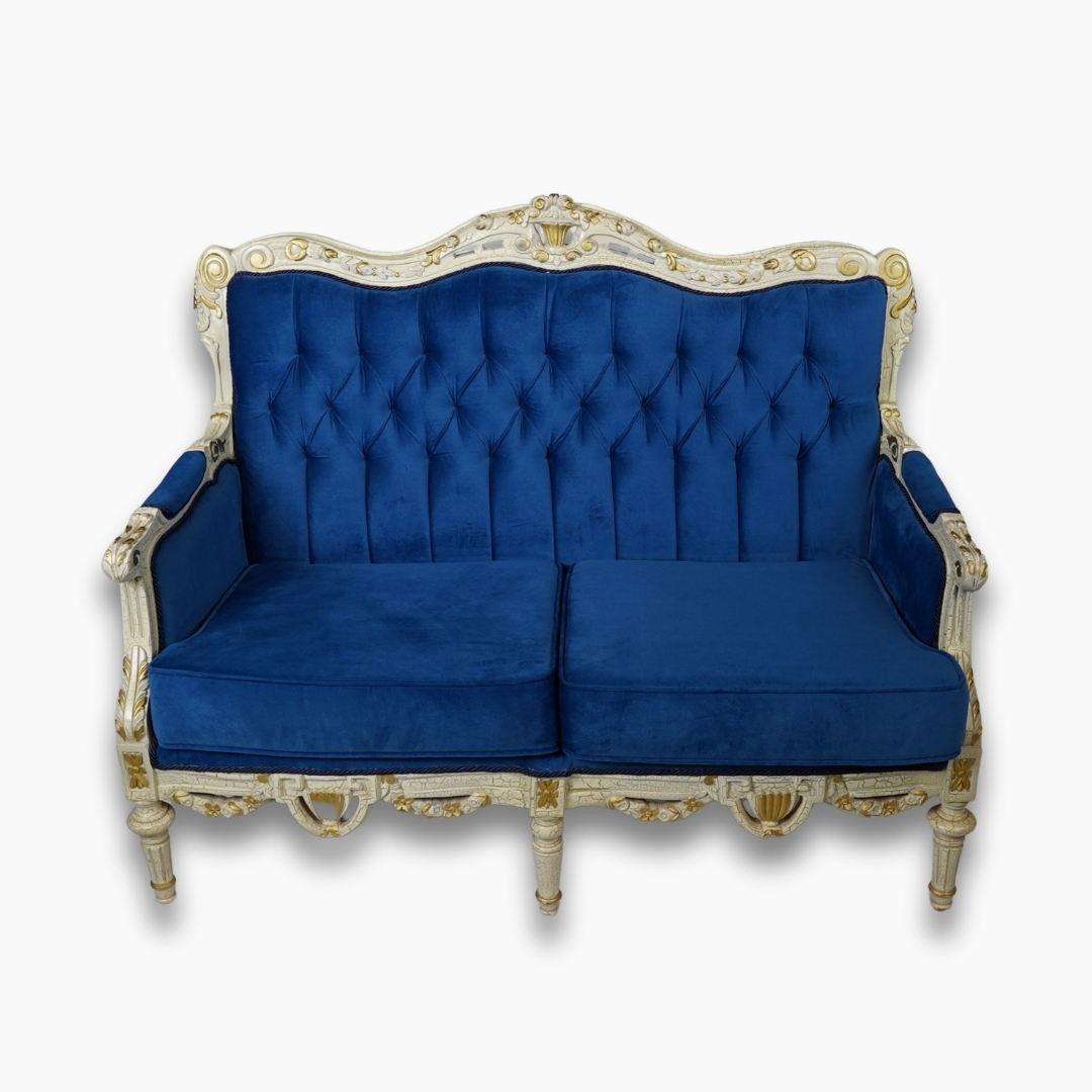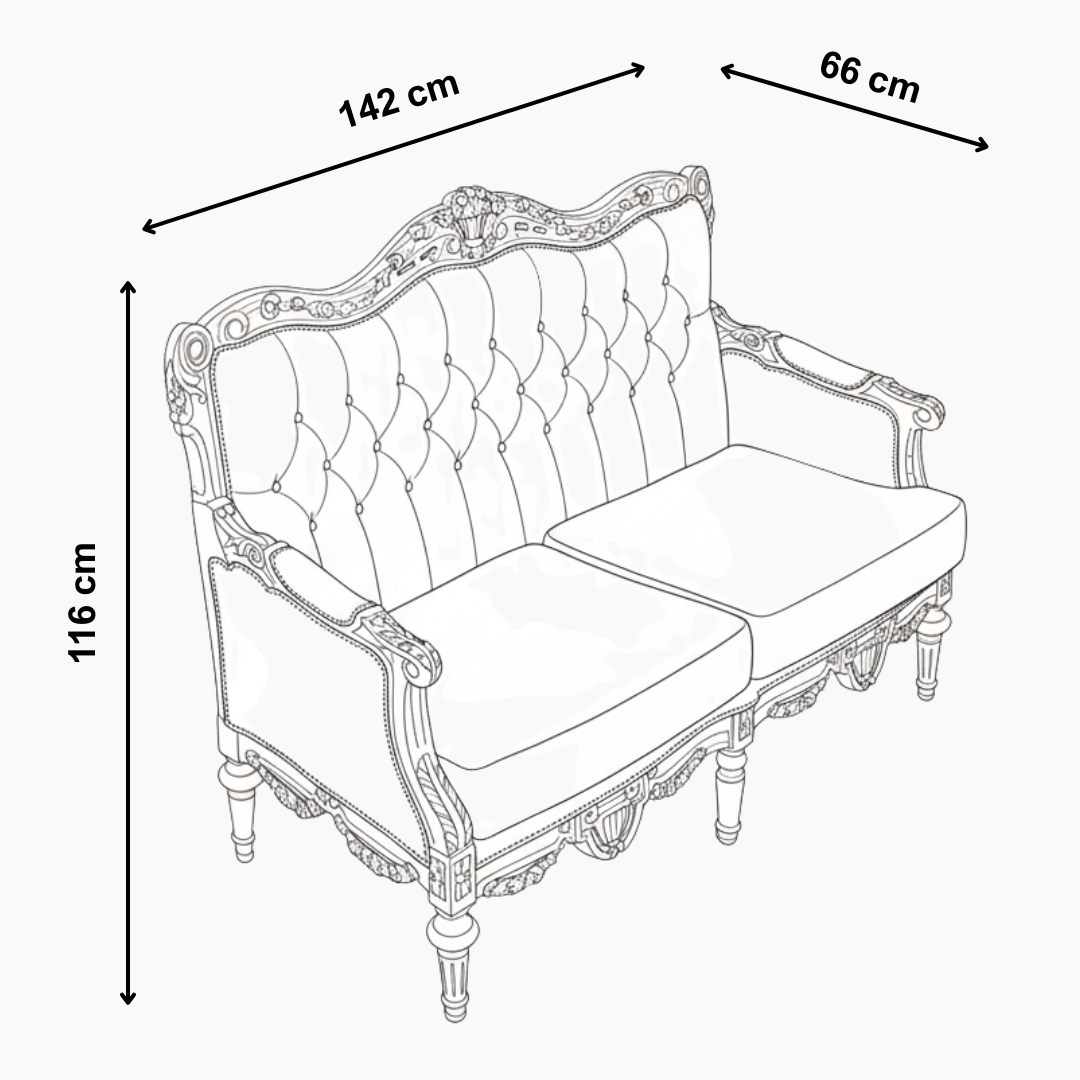 كنبة كلاسيكية وأنيقة تتسع لشخصين بشكل مريح، مصممة لتعكس الفخامة والراحة. مثالية لتزيين غرفة المعيشة أو أي مساحة اجتماعية.