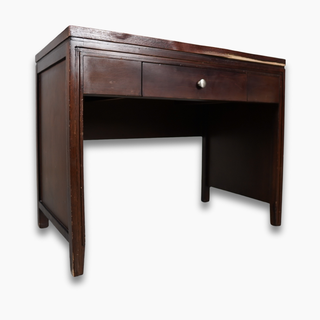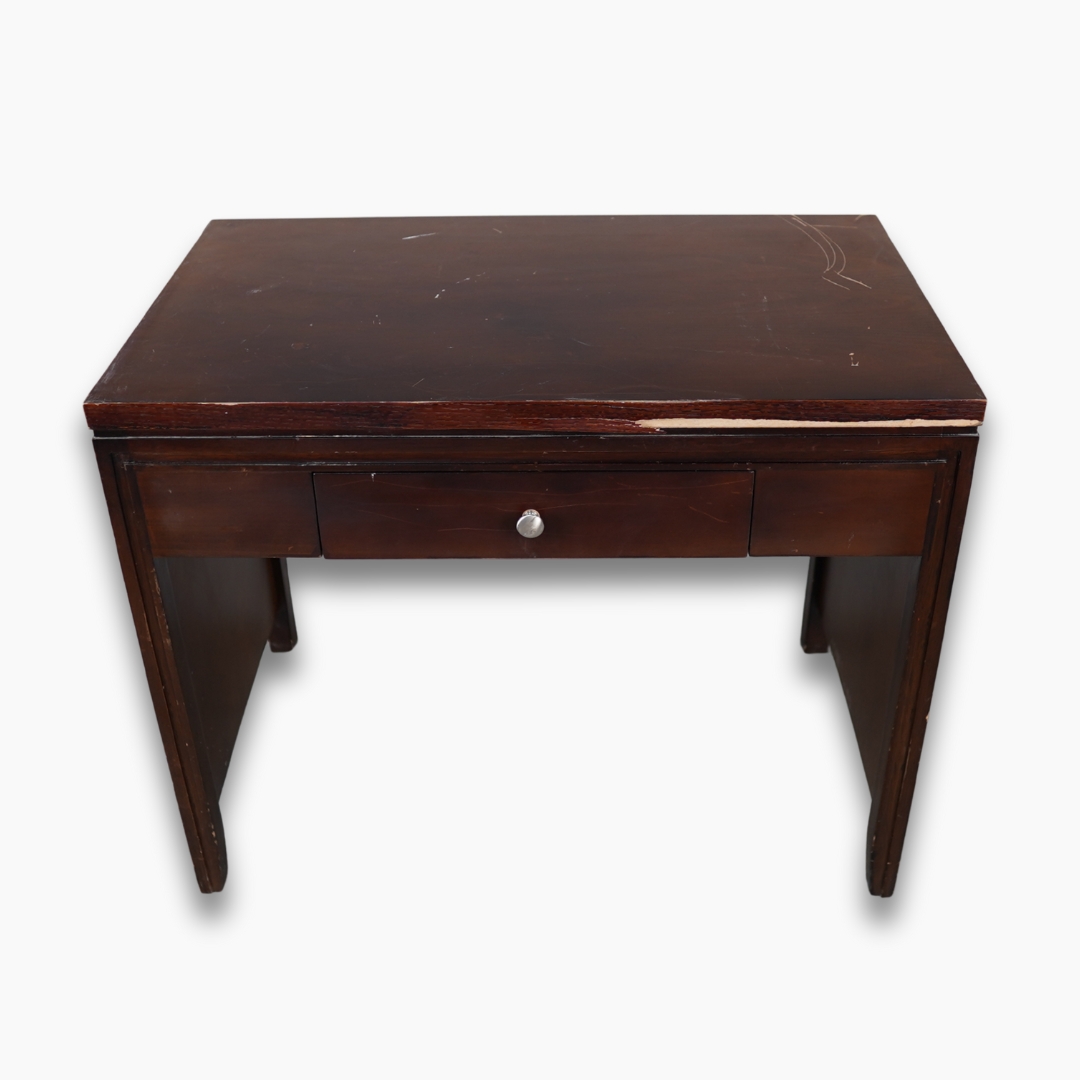 طاولة دراسة وعمل باللون البني الداكن مع درج مدمج للتخزين. مثالية للدراسة أو العمل أو الكتابة في المكتب المنزلي أو غرفة الدراسة بتصميم كلاسيكي واستخدام عملي.
