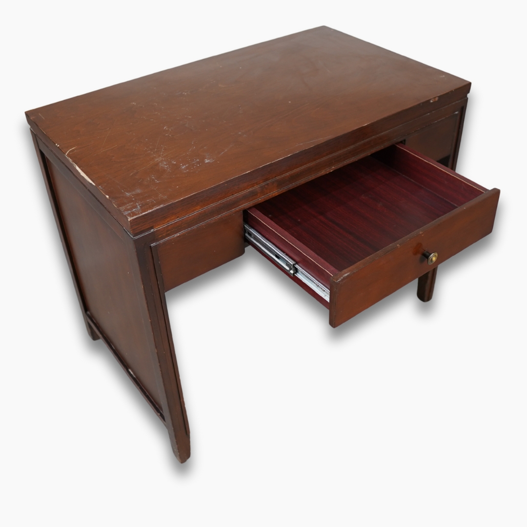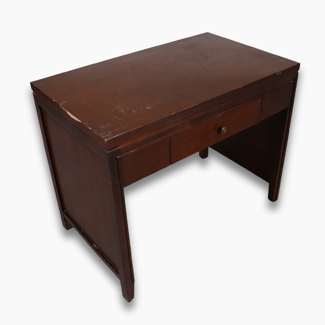 طاولة دراسة وعمل باللون البني الداكن مع درج مدمج للتخزين. مثالية للدراسة أو العمل أو الكتابة في المكتب المنزلي أو غرفة الدراسة بتصميم كلاسيكي واستخدام عملي.