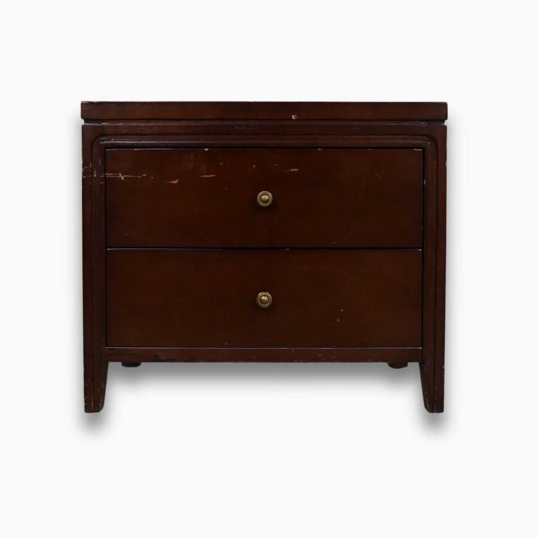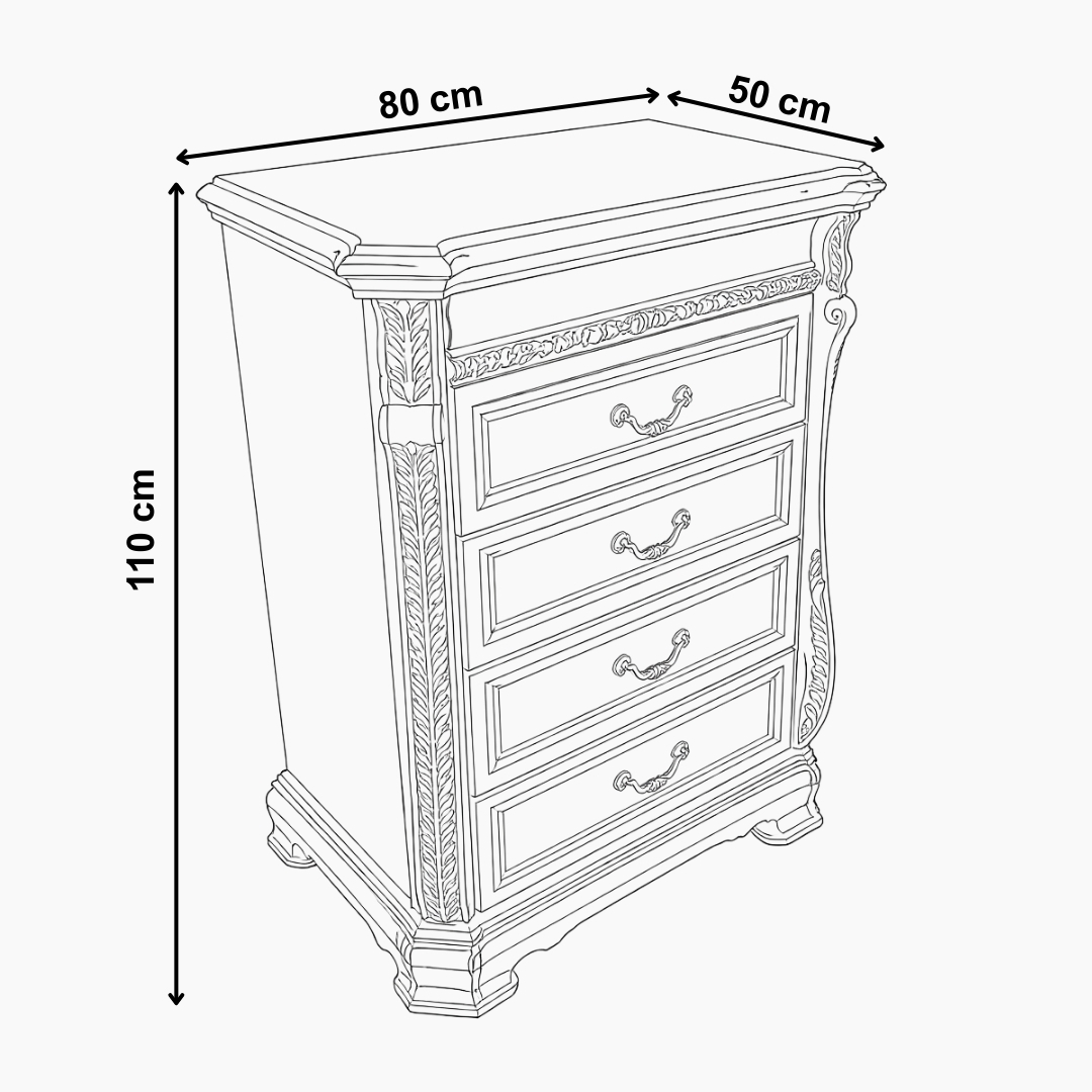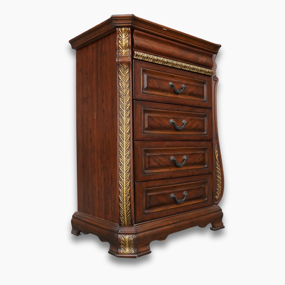 خزانة تخزين خشبية باللون البني الداكن تحتوي على أربعة أدراج واسعة لتنظيم الأغراض. مناسبة لغرف النوم أو غرف المعيشة أو المكاتب وتجمع بين المتانة والتصميم الخشبي الكلاسيكي.