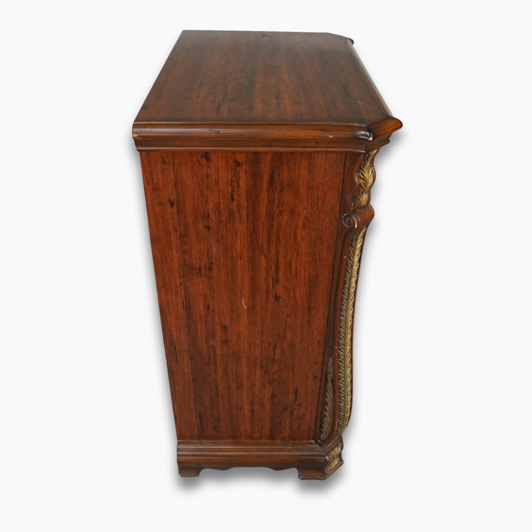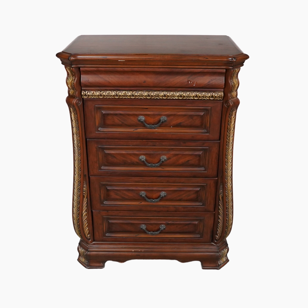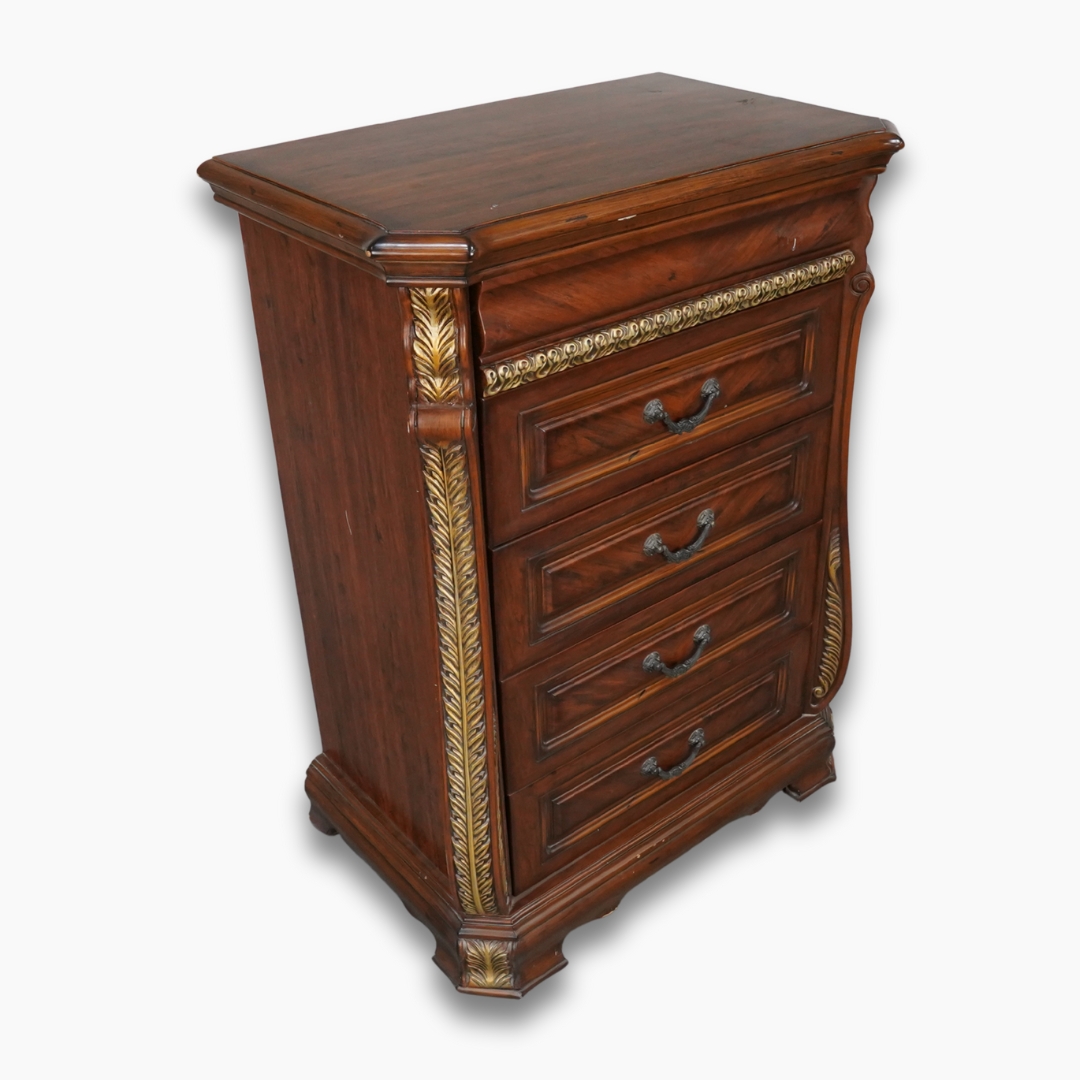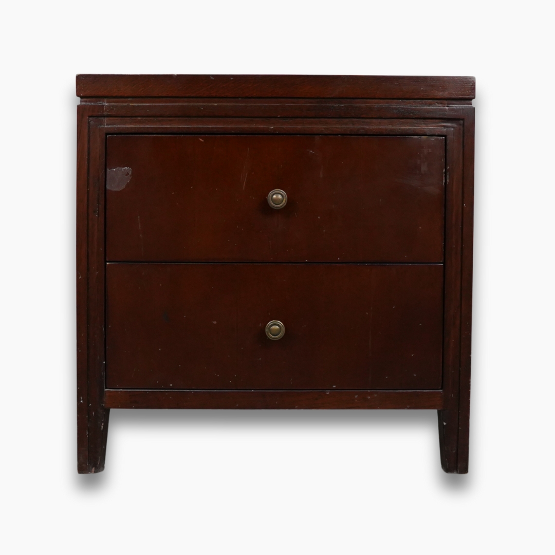 خزانة تخزين خشبية باللون البني الداكن تحتوي على أربعة أدراج واسعة لتنظيم الأغراض. مناسبة لغرف النوم أو غرف المعيشة أو المكاتب وتجمع بين المتانة والتصميم الخشبي الكلاسيكي.