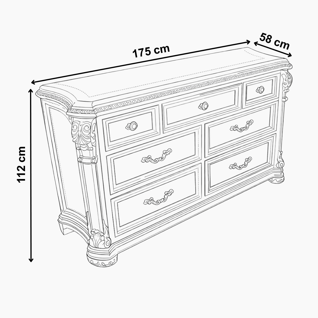وحدة تخزين أنيقة باللون البني الغامق تحتوي على 7 أدراج واسعة. حل مثالي لتنظيم الملابس ومستلزمات الغرفة بتصميم كلاسيكي بسيط.