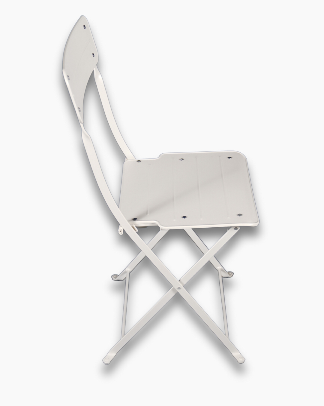 كرسي عملي قابل للطي باللون الأبيض ساطع، مثالي للاستخدام الخارجي في الحدائق أو الرحلات. تصميم مريح وخفيف يسهل حمله وتخزينه.